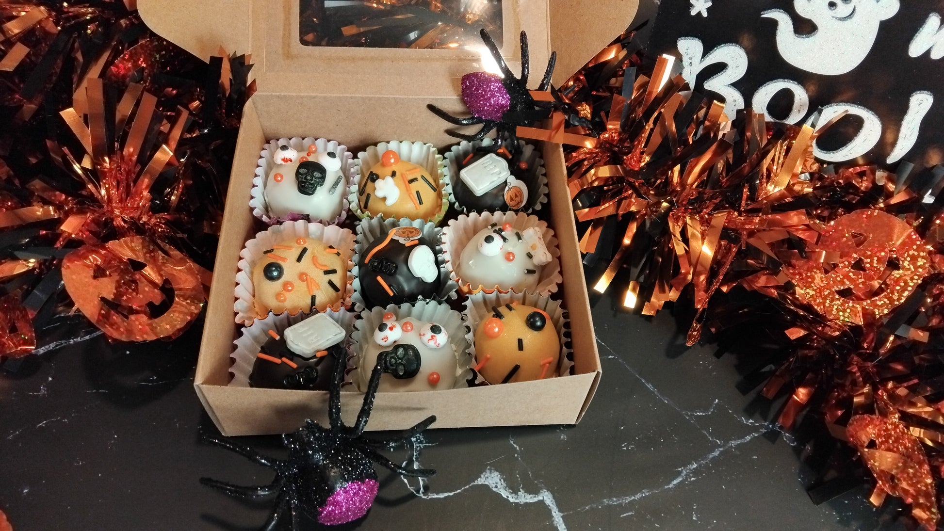Discover a Halloween treat that’s as delicious and decadent as it is healthy! Our Halloween Oat Ball Gift Box combines the cozy goodness of oats with irresistible fillings that ooze with spooky surprises — from wickedly oozing red blood to almost green goo, to hauntingly black potion. Each bite is chewy, satisfying, and completely original — a one-of-a-kind Halloween indulgence you won’t find anywhere else!