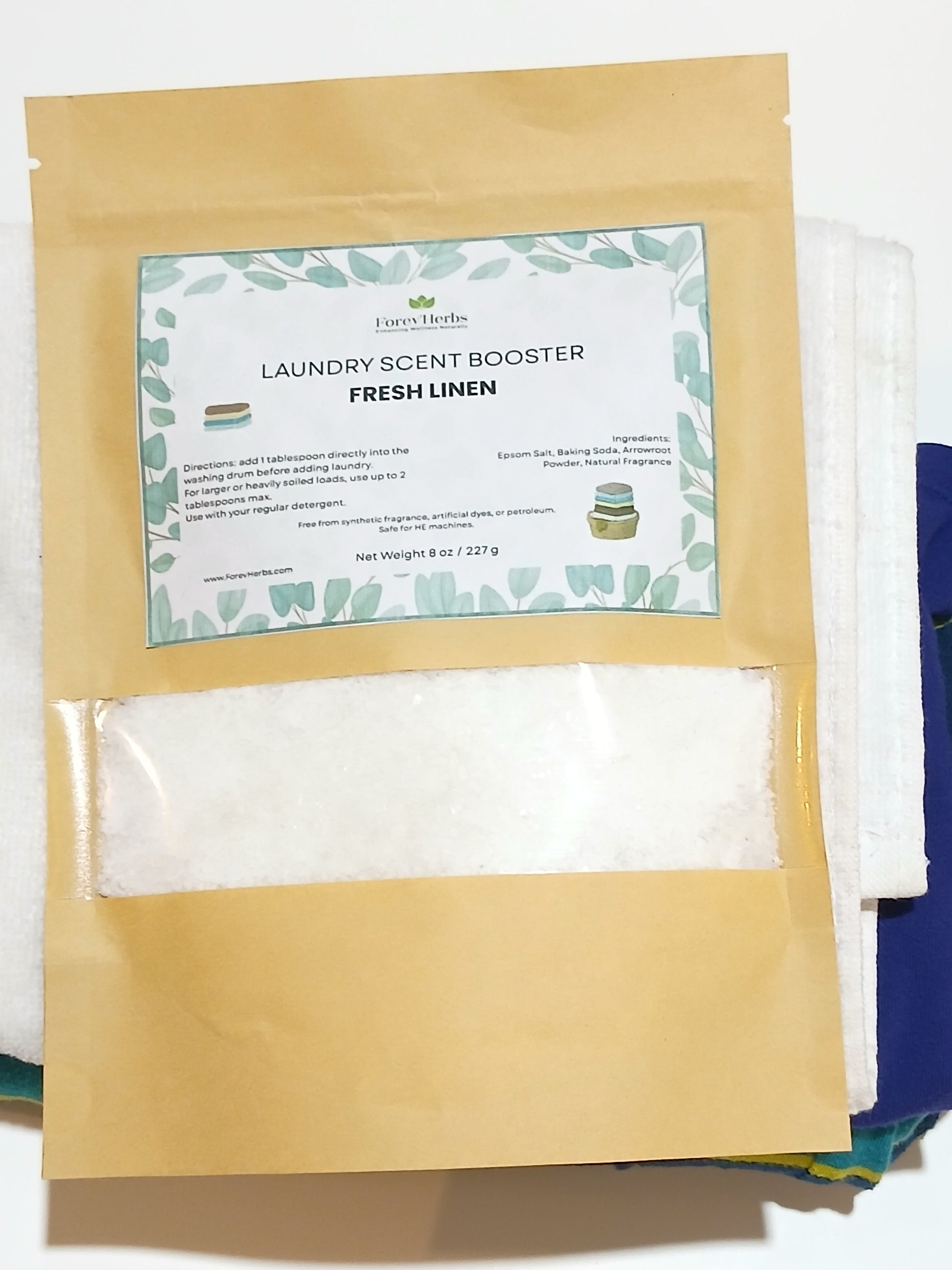 Our Natural Laundry Scent Booster is made with mineral salts and water-soluble, nature-derived fragrance emulsions that dissolve completely in the wash. Designed for HE and standard machines, it leaves clothes, towels, and linens lightly scented, never overpowering, and free from buildup.